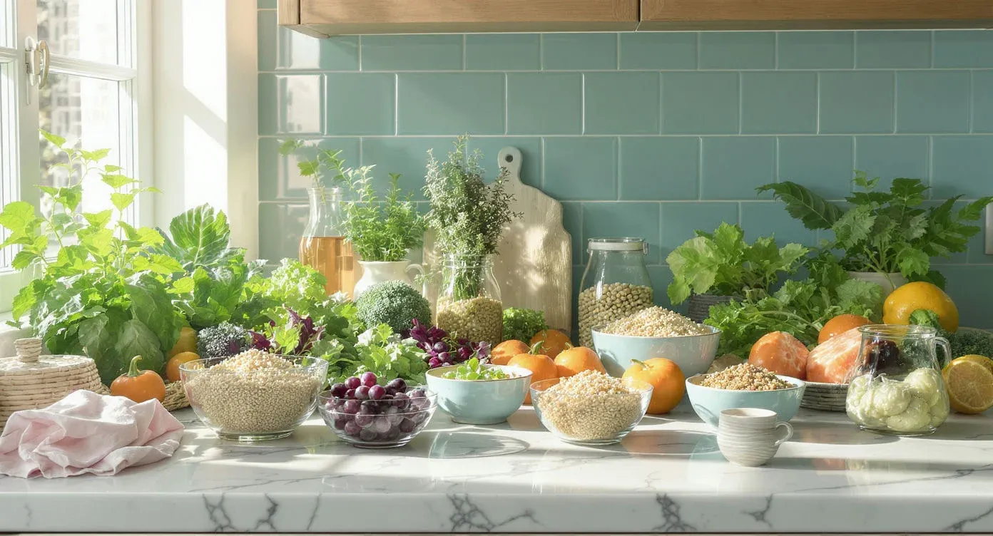 - • Fibre first: Gradually increase fibre to 25–38 grams daily from whole foods.